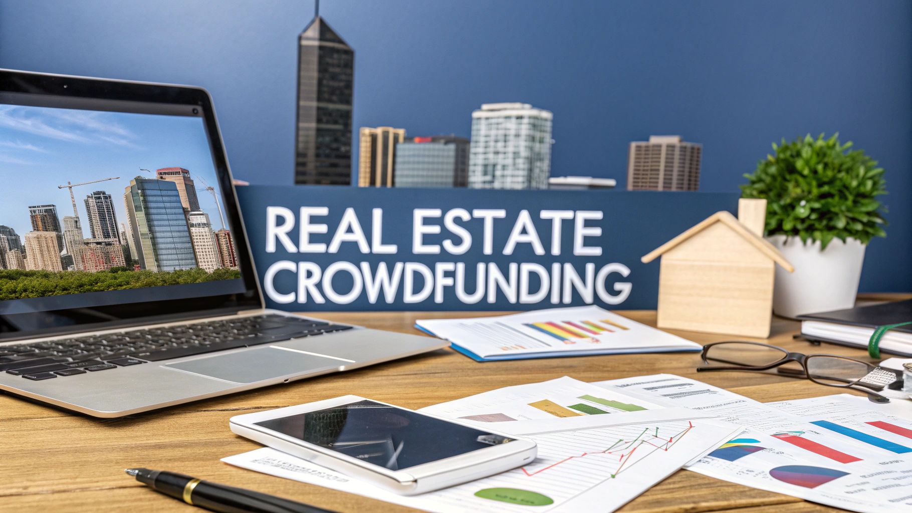 At its core, real estate crowdfunding is pretty simple. It lets people like you and me pool our money online to buy shares in properties—anything from apartment buildings to commercial complexes. This model turns what was once a costly, hands-on headache into something you can manage from your laptop. Forget saving up hundreds of thousands for a down payment; you can now get started with as little as $10.