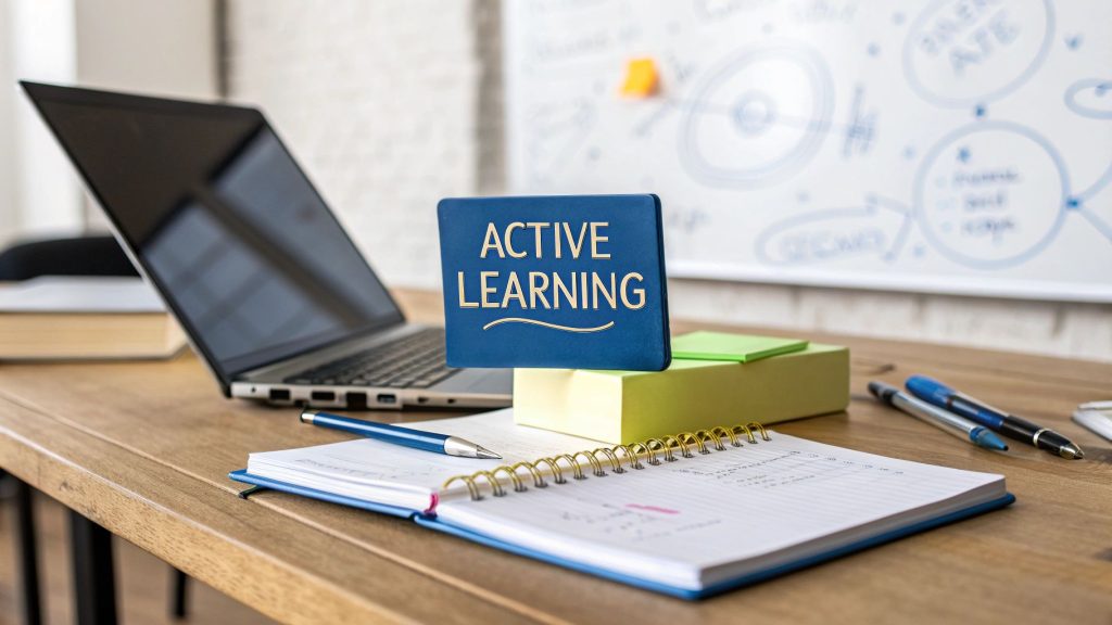 Think of active recall as a mental workout. It's the act of pulling information out of your brain, not just cramming it in. It’s the difference between staring at a map of your city versus trying to draw it from memory. That little bit of struggle to remember something actually strengthens the neural pathways, making the memory stick.